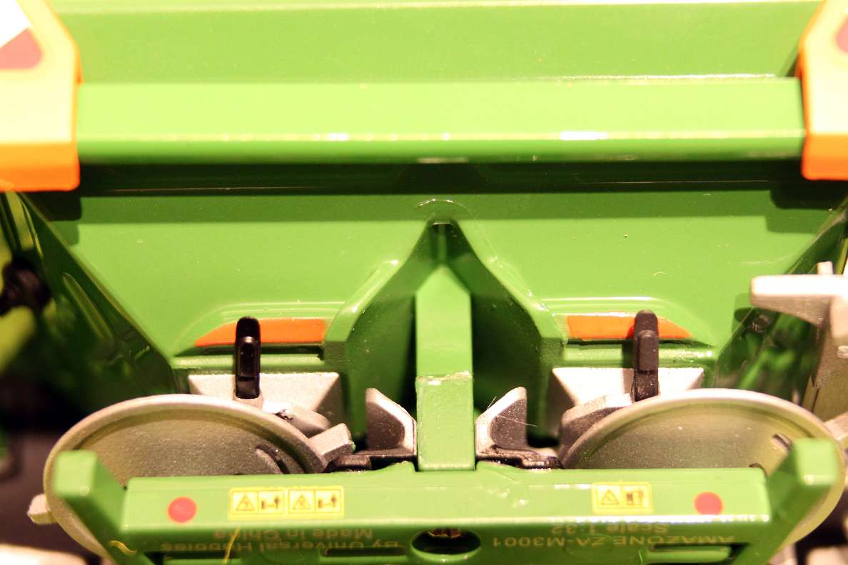 Das Modell hat viele schöne Details und keine erkennbaren Mängel. Wen der Abstand zwischen Streuer und Trecker stört kann den Sikuanbaubock einfach abschrauben. Er ist lediglich mit 2 kleinen Schräubchen montiert.