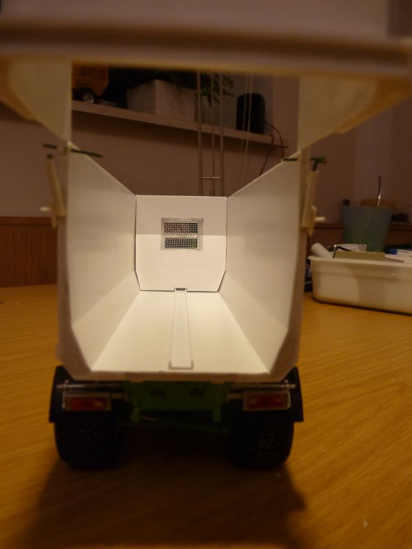 Die Schubeinrichtung ist nicht kompl. funktional gebaut, die Abschiebewand, kann ich noch per Hand verschieben, aber ohne die 3 Hydr. Zylinder.