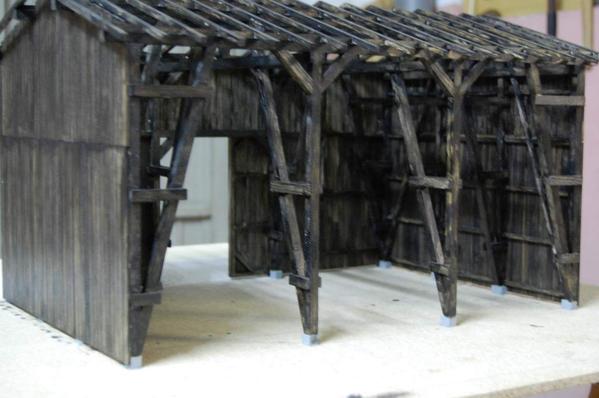 erstmal danke für die positive Resonanz. Heute zeige ich euch den zweiten Bauabschnitt, das Grundgerüst ist nun schwarz lasiert und die Dachsparren wurden aufgelegt. Die Farbe schwarz wurde vom Original übernommen, so gut wie alle Feldscheunen in unserer Gegend die 40Jahre und älter sind haben diesen Farbton.