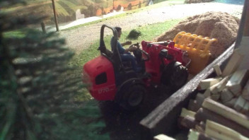 Wir haben gestern Holzgehäckselt, ein Teil davon wurde in das kleiner Lager gepackt und der andere Teil auf den neu angelegtn Platz. Dann wurde auch noch die Siloballen unten gestapelt, da sie da nicht im weg umgehen. Mittlerweile finde ich mein Dio perfekt;)