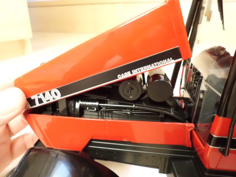 Die seitlichen Haubenbleche sind aus Metall. Dadurch ergibt sich bei genauem Hinsehen ein kleiner Farbunterschied zur (Plaste)haube. Die Nachbildung des Motors bzw. der Filter ist auch recht grob, und nicht mit der Precision Serie vergleichbar. -