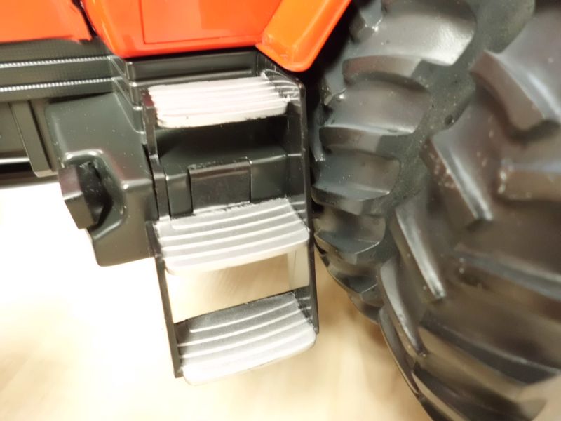 Bis auf die beiden Frontscheinwerfer sind sämtliche Lampen aufgemalt. Die Trittstufen sind nicht durchbrochen und auch der Auspuff ist nicht angebohrt. All dies hätte man in einem solchen Maßstab sicher leicht realisieren können. Zudem endet das Auspuffrohr unterhalb in einem eckigen Etwas. Kurios ist auch der rechte Außenspiegel. Er ist angeklappt dargestellt und lässt sich auch nicht verändern (dies war auch bei dem versehentlich gelieferten "Demo" Modell der Fall).