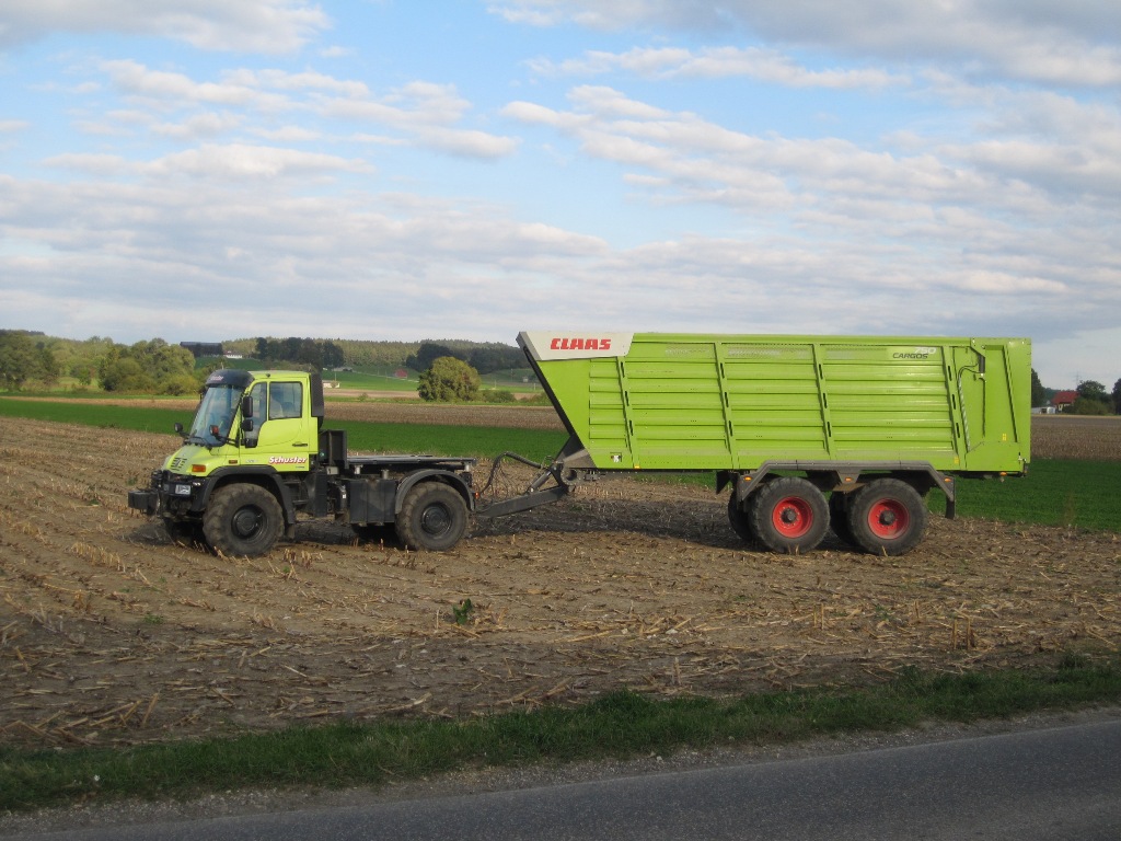 Für die Cargos 9500 sind die alten Unimogs ein bisschen leicht ;). Die Cargos werden darum immer nur mit den Axion 840/850 gefahren. Es waren aber auch Unimog-Gespanne unterwegs zur BGA. Zur BGA sind 7 und zur Umladestation 3 Gespanne gelaufen.