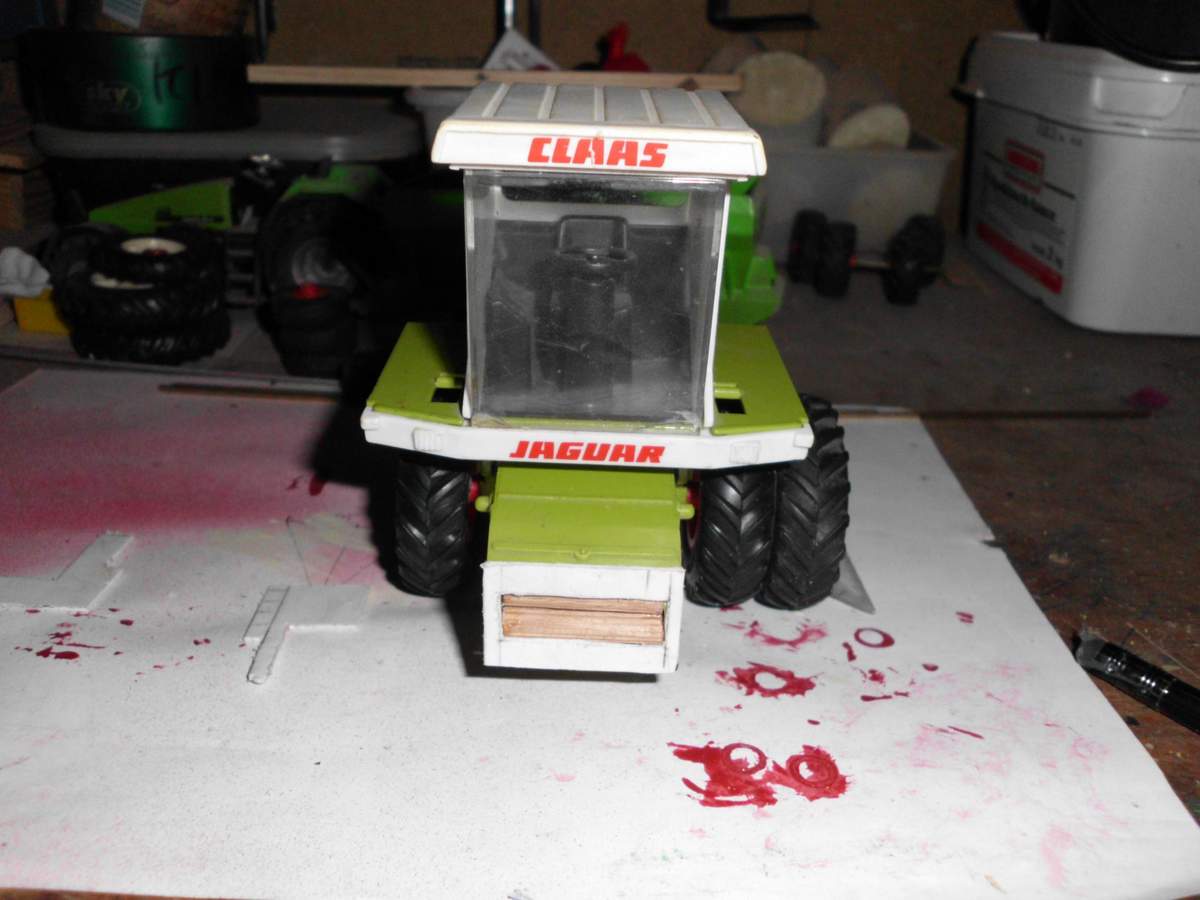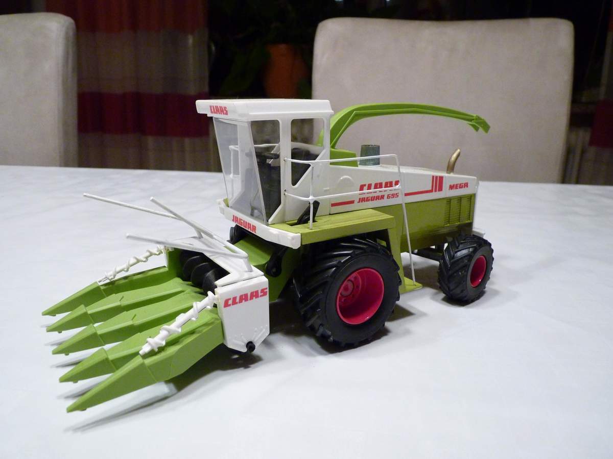 Heute hatte ich mal wieder Zeit für den Modellbau. Mein heutiges Opfer war ein alter Bastelrest von Siku, der mir schon lange im Weg lag, mir aber auch zu schade war ihn zu entsorgen. Also habe ich mir gedacht, wenn Reste verwerten, dann richtig. Es handelt sich um einen Claas Jaguar 695 Mega. Ich habe bereits den Einzug umgebaut, sodass er etwas realistischer ist. Das zukünftige Schneidwerk kann über die überstehende obere Kante gehängt werden. Außerdem fielen mir einige alte Siku Reifen in die Hände, was mich auf die Idee gebracht hat ihm Zwillinge zu verpassen.