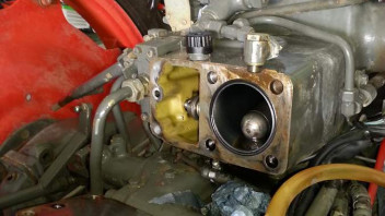 Hier noch ein Bild vom Hubzylinder abdichten...dieser sitzt über dem Getriebe . Dadurch das die Dichtungen alt waren lief ÖL in das Getriebe was dann immer das Öl umgepumpt hat so das die HH immer etwas abgesackt ist und wieder hoch. Konnte man so natürlich perfekt abdichten inerhalb von 20 min;-)