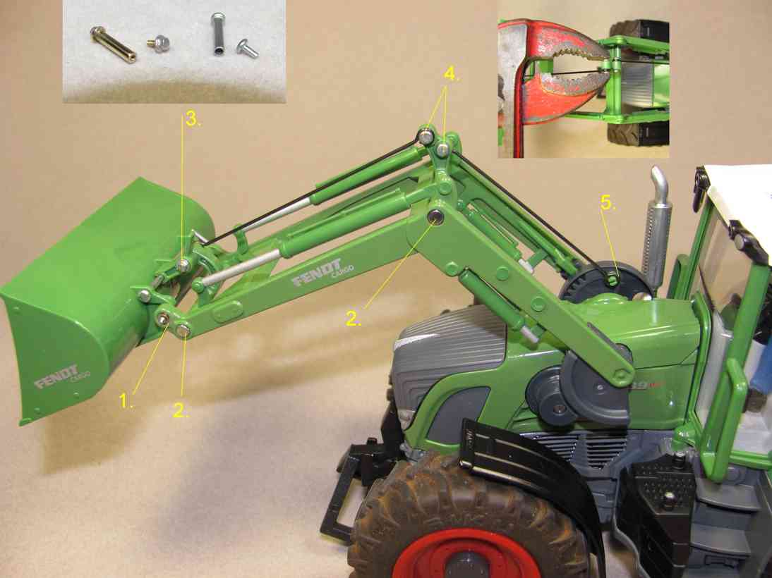 1. Den Frontladerarm auf 2,0mm aufgebohrt und mit einer Messingbuchse versehen.