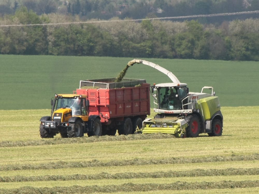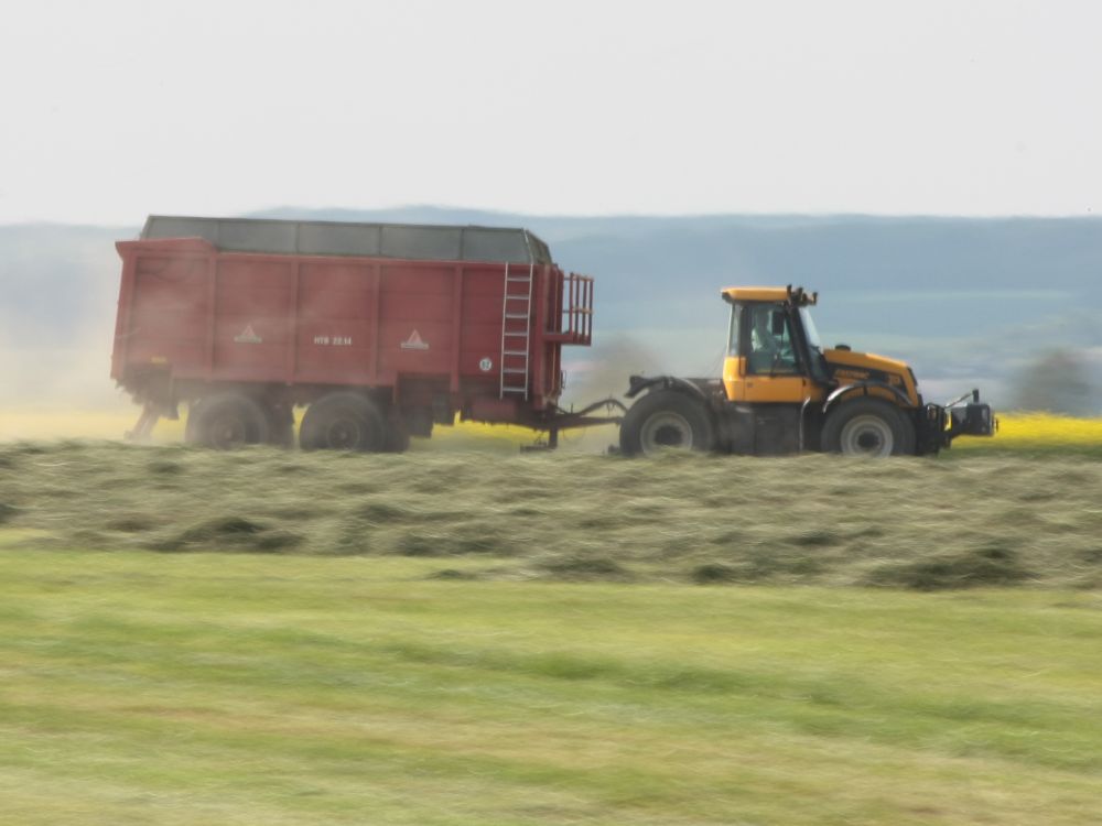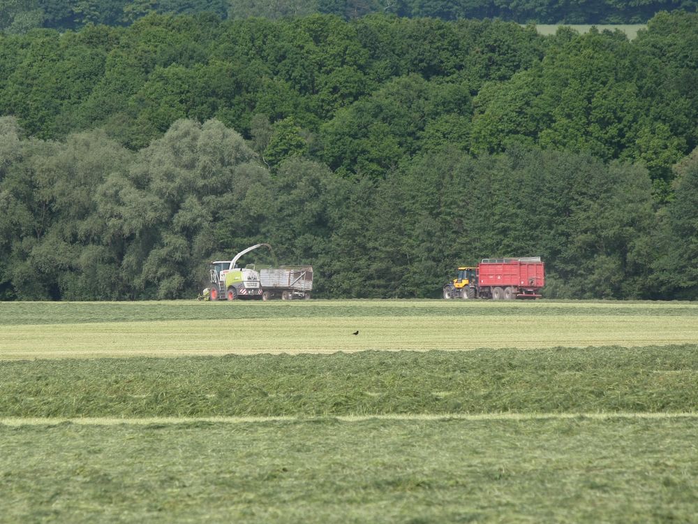 Heute bin ich endlich mal rechtzeitig zum Häckseln am richtigen Ort gewesen. Auf dem Weg zur Arbeit hab ich schon von Weitem einen Schwader gesehen. Auf dem Heimweg konnte ich dann von einer Stelle die ganze Sache schön überblicken. Die Luft flimmert allerdings schon ganz schön.