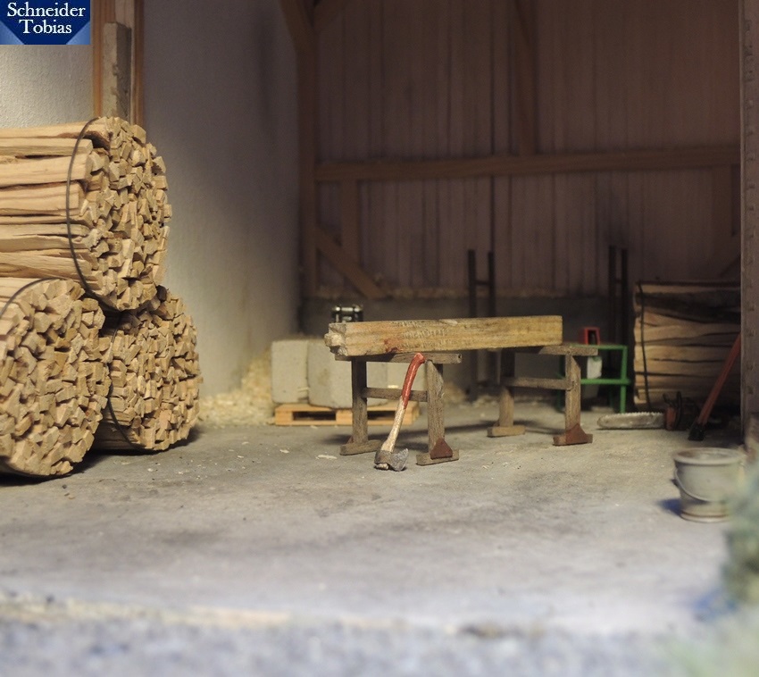 Da hab ich schon wieder was nicht mitbekommen. Tolle Diodetails, Tobi. Die Axt und die Holzverbindungen der Böcke sind erste Sahne. Die schweren Böcke sind mir auch etwas zu wuchtig, dafür finde ich die anderen umso besser. Das ist aber wohl reine Geschmacksache. Gearbeitet sind sie alle tiptop.