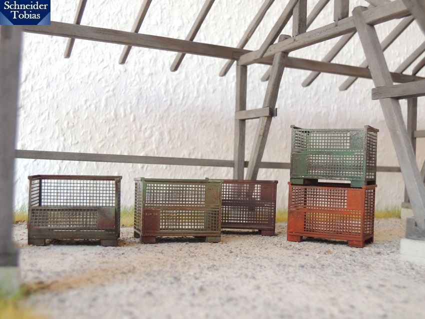Beim letzten Bayern-Stammtisch habe ich fünf Gitterboxen zum Lackieren und Altern bekommen. So ist nun das Resultat...
