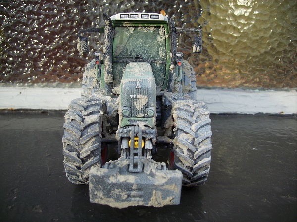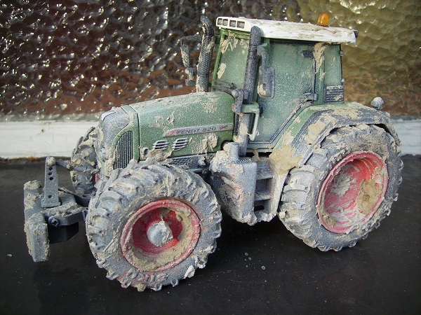 Habe mich mal an einem Fendt 820 zu schaffen gemacht. Die Reifen wurden auf größere getauscht. Dann wurde er noch verschmutzt. Er war bei einer Erdbewegungsfirma auf einer Baustelle an einem Muldenkipper im Einsatz. Die Kotflügel wurden abmontiert, da sie im unebenen Gelände immer abgebrochen sind;-) . Die Baustelle war sehr schlammig und nass. Bitte seid gütig mit euren Bewertungen, da das mein 1. Versuch ist ein Modell mal so richtig einzusauen ;).