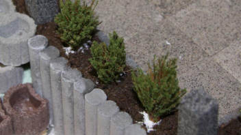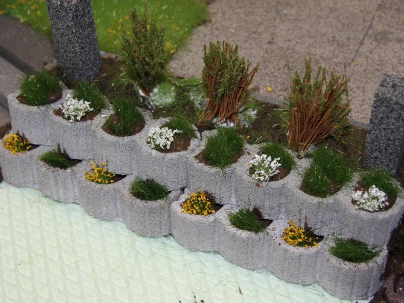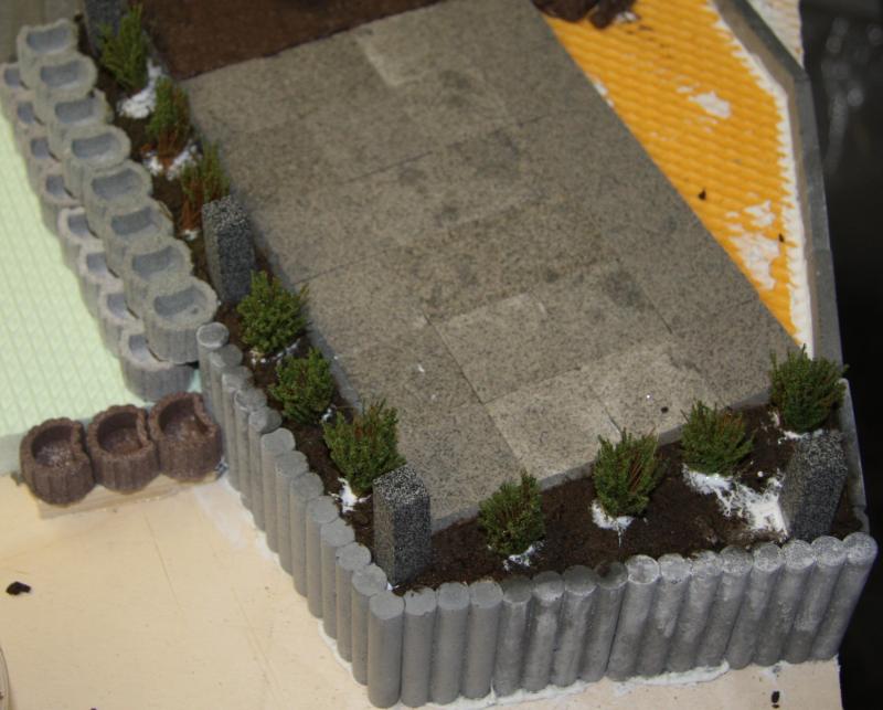 Die Höhensprünge werden mit Palisaden und Pflanzringen ausgeglichen. Oberhalb der Palisaden kommt ein Geländer hin.