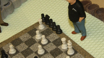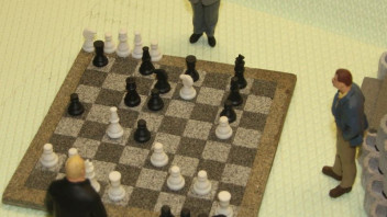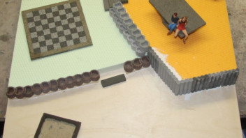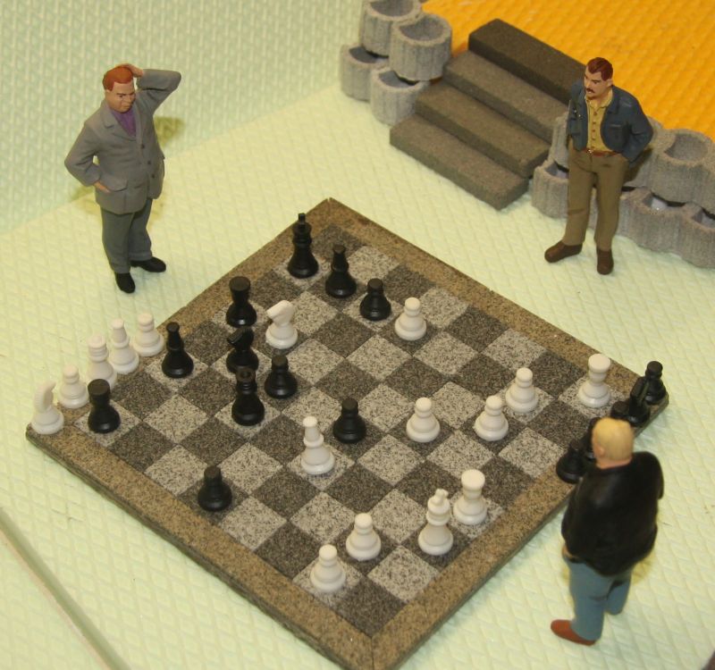Auf der mittleren Ebene befindet sich ein Schachfeld. Beim Preis der Figuren (32,75 EUR) treibt es einem zwar das Wasser in die Augen, aber ich fand, sie passen einfach genial als Schachspieler. Der dritte Mann gibt vielleicht später mal einen fürsorglichen Opa ab.