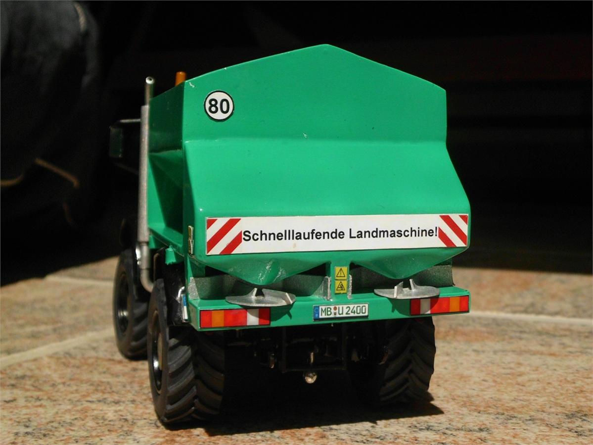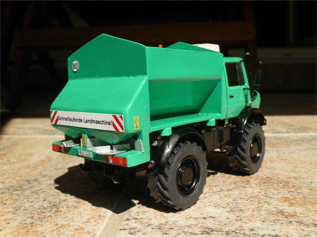 Als ehemaliger Unimogfahrer begeistert mich das ja besonders, wenn sich einer der Unimogs annimmt. Die Änderungen sind Dir gut gelungen und der Düngerstreueraufbau sowieso. Finde, eine sehr gute Idee, diese Geräteeinheit. Mit lackieren, nun ja, da macht jeder seine Erfahrungen.