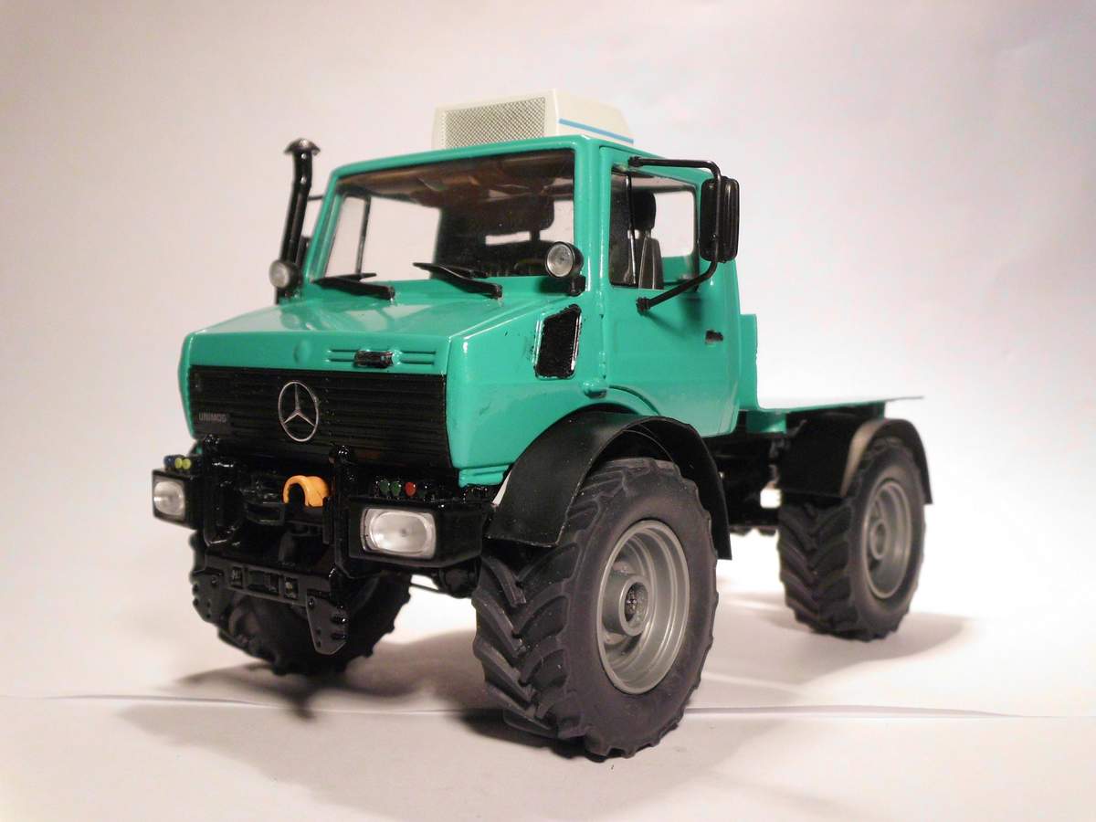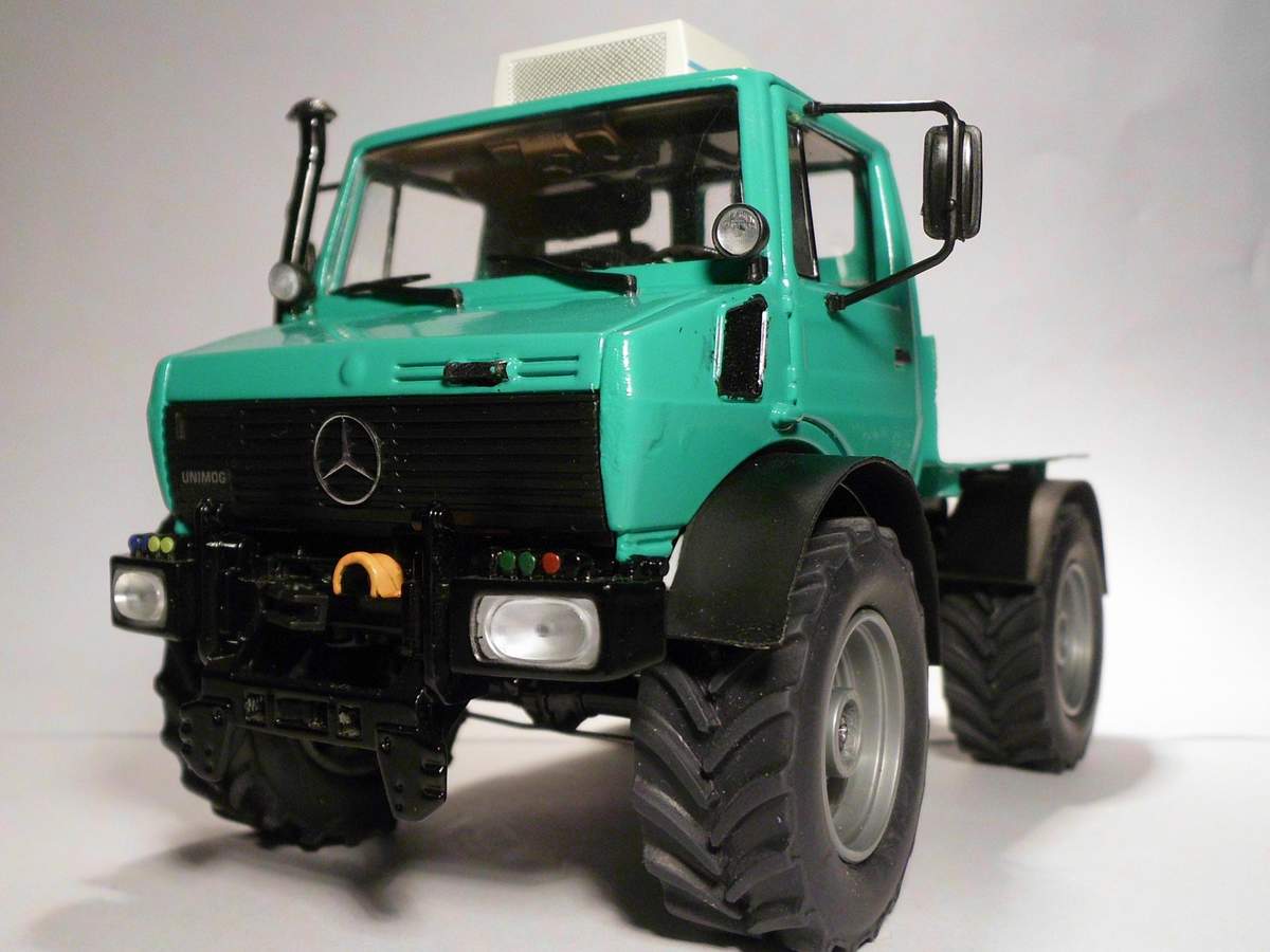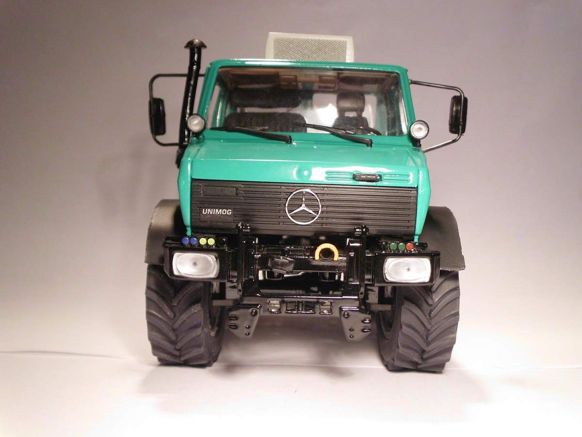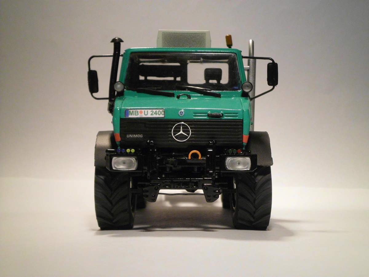 Ich bin gerade dabei, einen Schuco Unimog 1600 in claasgrün zu einem Unimog 2400 umzubauen.