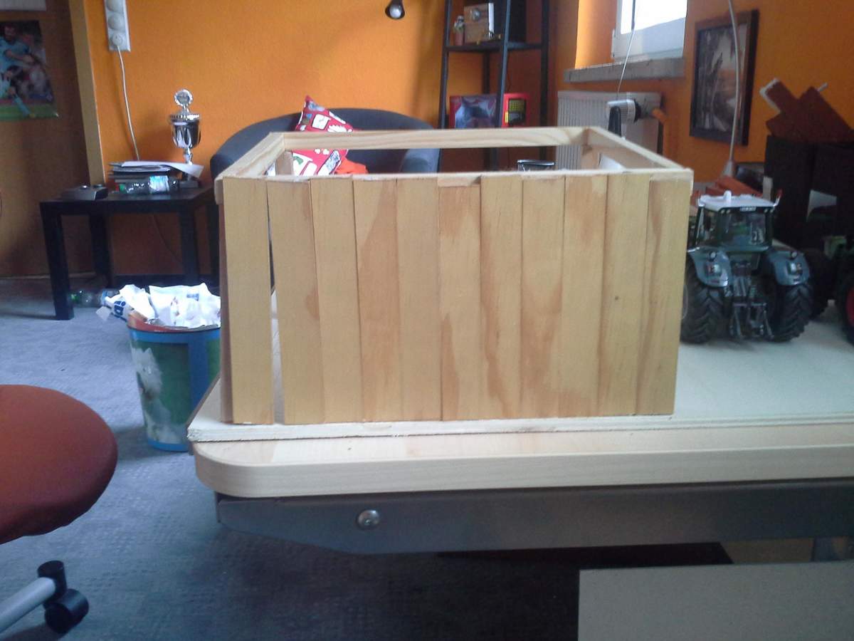 Die Bretter vom Unterstand würde ich mindestens halbieren, kommen mir im Vergleich zum Fendt Hinterrad viel zu breit vor.