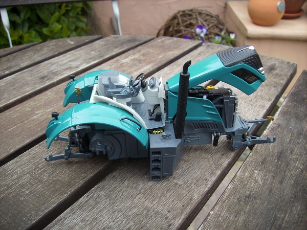 Habe mich an einem 2. 828 zu schaffen gemacht. Er wurde auch komplett auseinander genommen und in Karibikblau lackiert. Er bekam Lufthörner, Antennen, Werkzeugkiste und einen Feuerlöscher. Er wurde auf 1,50er Spur umgebaut. Pflegereifen drauf, Steckachse rein, Planetentriebe dran und fertig ;-). Auf der linken Seite fehlt noch ein Wasserdecal.