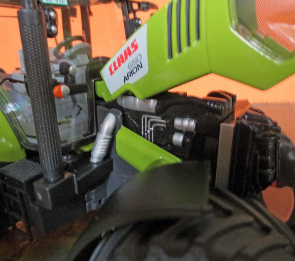 Die Nieten an der Fronthydraulik und an der Heckhydraulik hätte man lackieren sollen damit sie nicht so ins Auge fallen. Das hat man bei den bisherigen Claas Modellen besser gelöst.