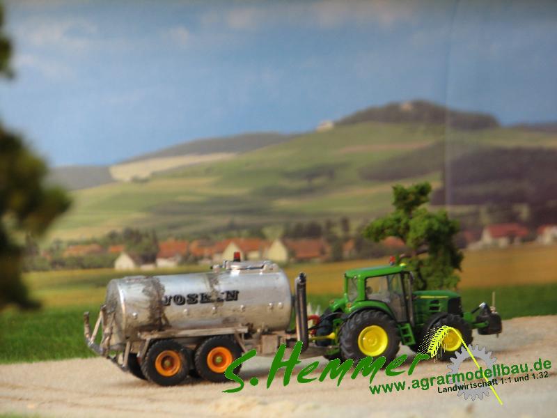 der güllecontainer im anflug. gezogen von einem jd 4955