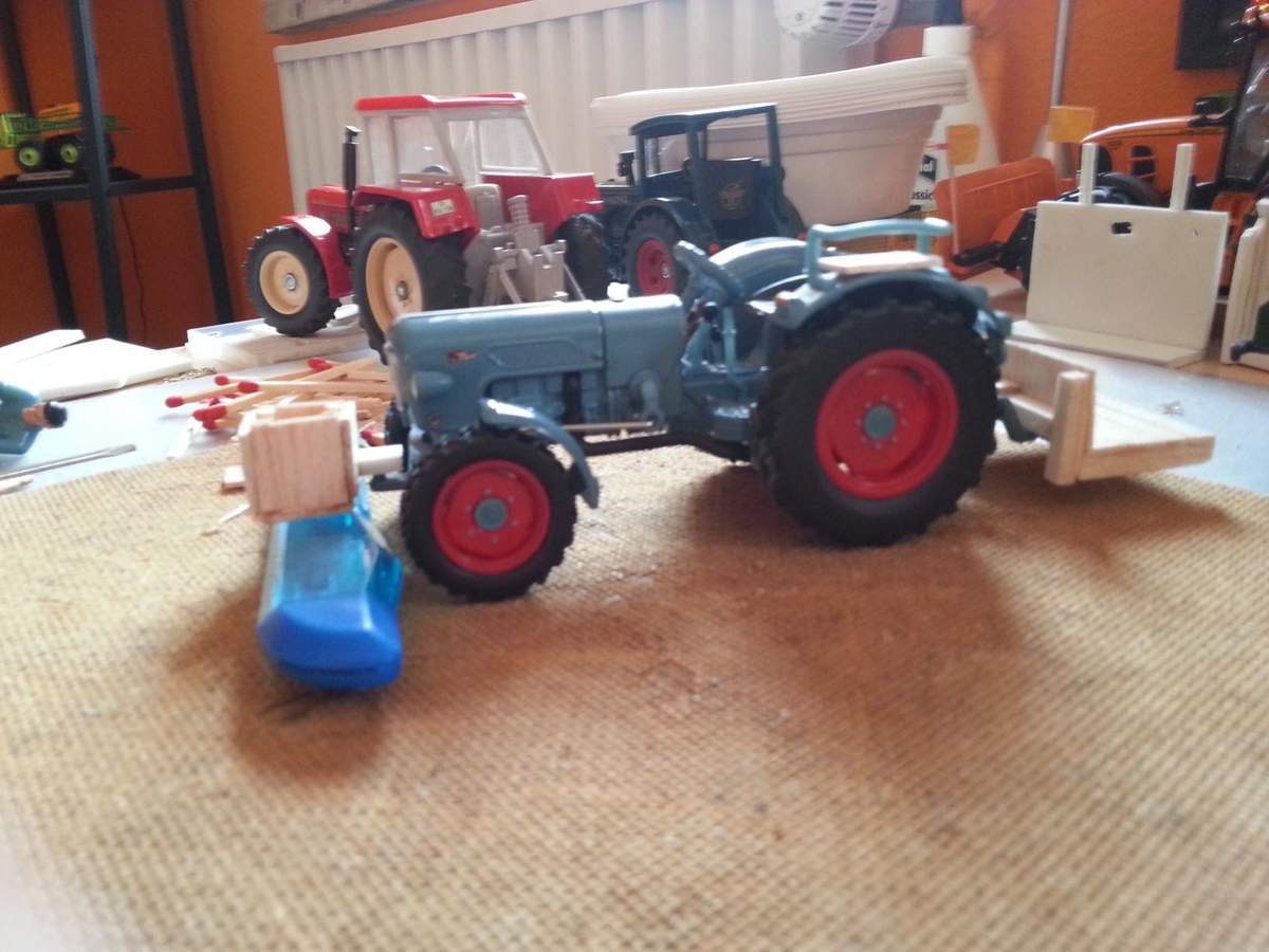 Ich habe jetzt mal eine Pritsche, Sitzbank und einen Frontkasten aus Balsaholz für meinen Eicher gebaut.
