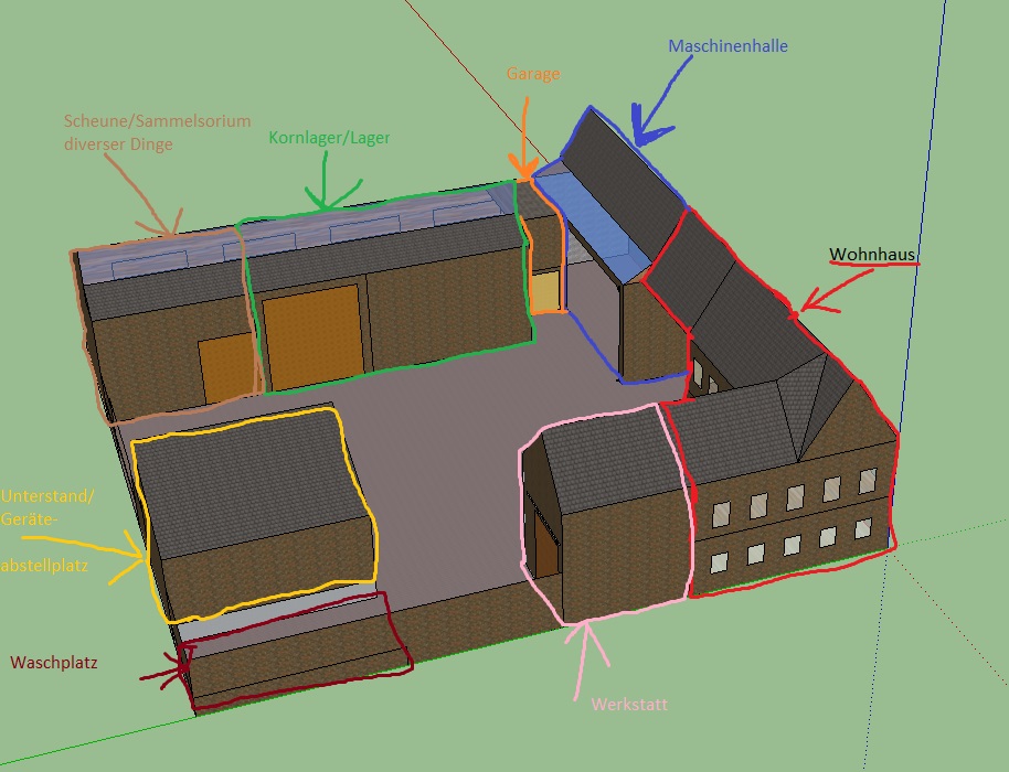 Nun habe ich für euch Bilder des 3d Modelles des Hofes und ein Bild des Kellers.