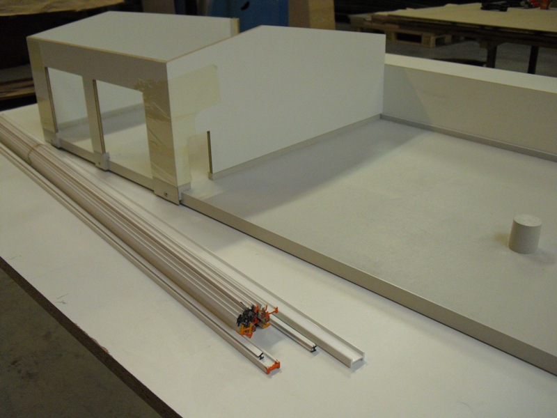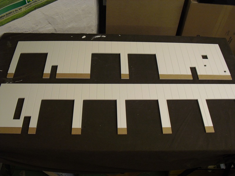 gestern und heute wurden die Arbeiten am RWZ Hauptgebäude wieder aufgenommen. Habe mich mal dran gegeben die Innenwände zuzuschneiden und für weitere Ausfräsungen vorzubereiten. Parallel wurde die Bodenplatte für die Unterstellhalle und deren Sockel in Betongrau gestrichen.