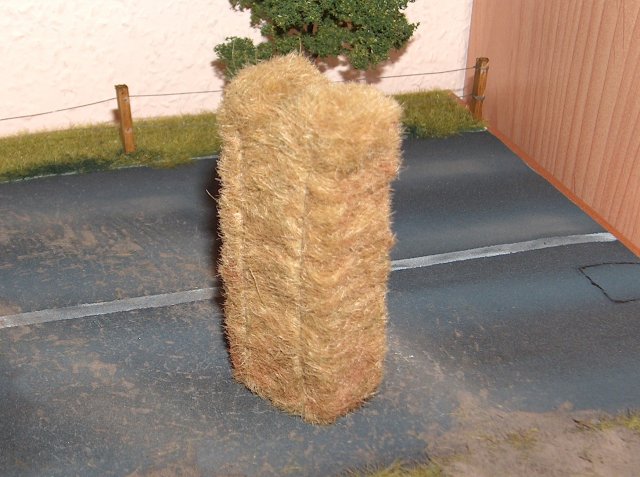 Da ich noch sehr viele Siloblöcke von Siku hatte, diese aber nicht mehr auf meinem Dio verwenden wollte, habe ich sie mit Leim bepinselt und in gehäckseltem (und natürlich vorher getrocknetem) Gras gewälzt. So konnte ich die Plastik-Blöcke ganz gut verwerten.