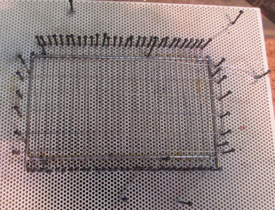 Nachdem mit der Drahtbürste die Flussmittelreste entfernt wurden, sieht der Zaun so aus. Die Lötstellen werden noch verputzt.