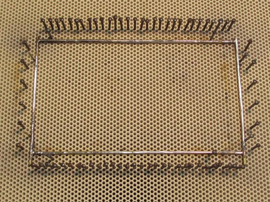 Der erste Rahmen (unten) lag unter Zwang auf der Platte, so dass sich der vertikale Holm durchgebogen hat.