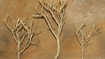 Von der Matte war ich im ersten Moment etwas enttäuscht. Sie besteht aus einem Drahtgeflecht und verschiedenen Fasern, wobei man das Drahtgeflecht recht deutlich sieht. Andererseits ist die Matte dadurch ziemlich stabil und gut formbar. Ich denke, als Unterbewuchs bringt sie Volumen und man kann sie mit Weißleim und Beflockung aufhübschen. Das werd ich am Zaun auf dem Baustellendio mal probieren.