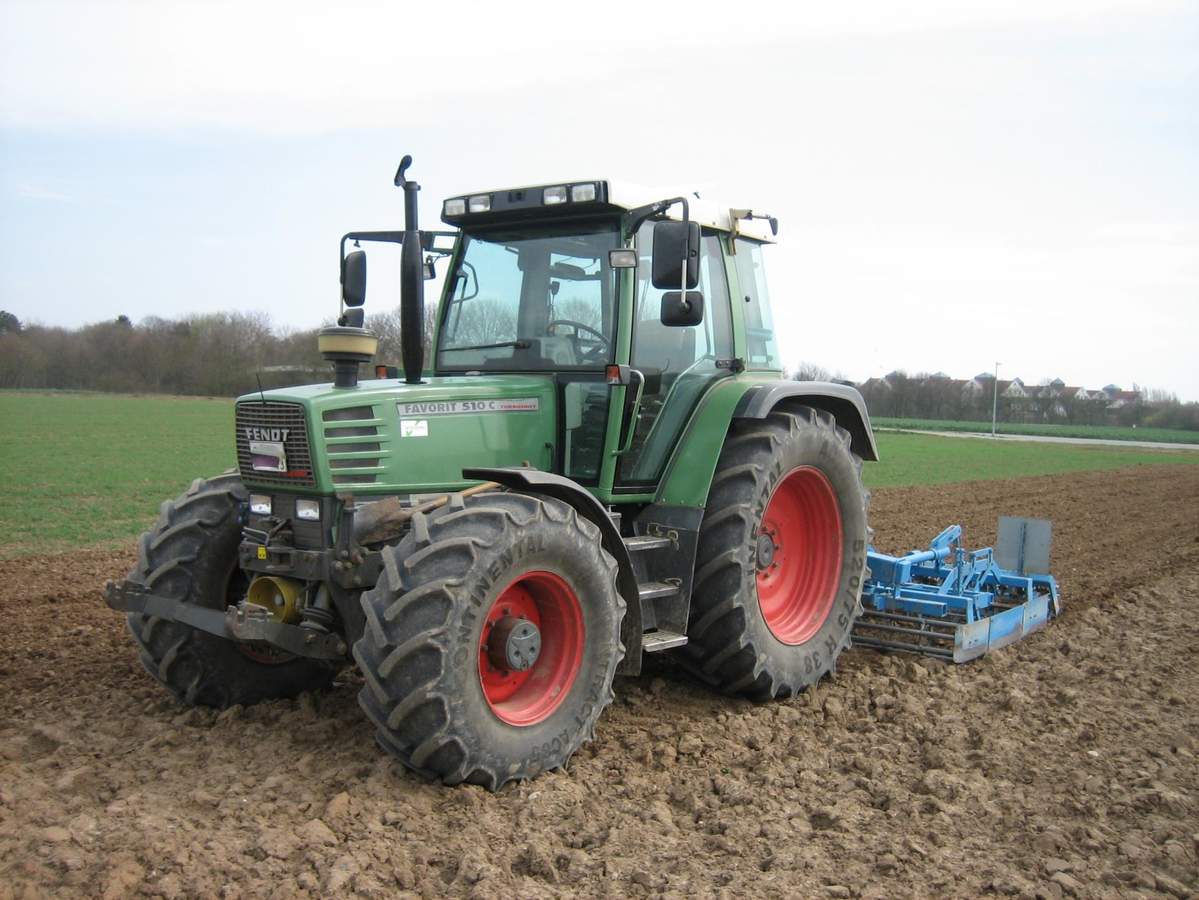 Auf diesen Acker eines Verwandten werden bald Erdbeeren gesetzt. Dass der Kompaktor am 510er hängt ist untypisch und nur dadurch bedingt, dass gleichzeitig der 312er Vario im Einsatz mit der Spritze war. Ansonsten ist der 312er aufgrund breiterer Bereifung wesentlich besser für die flache Saatbettbereitung geeignet.