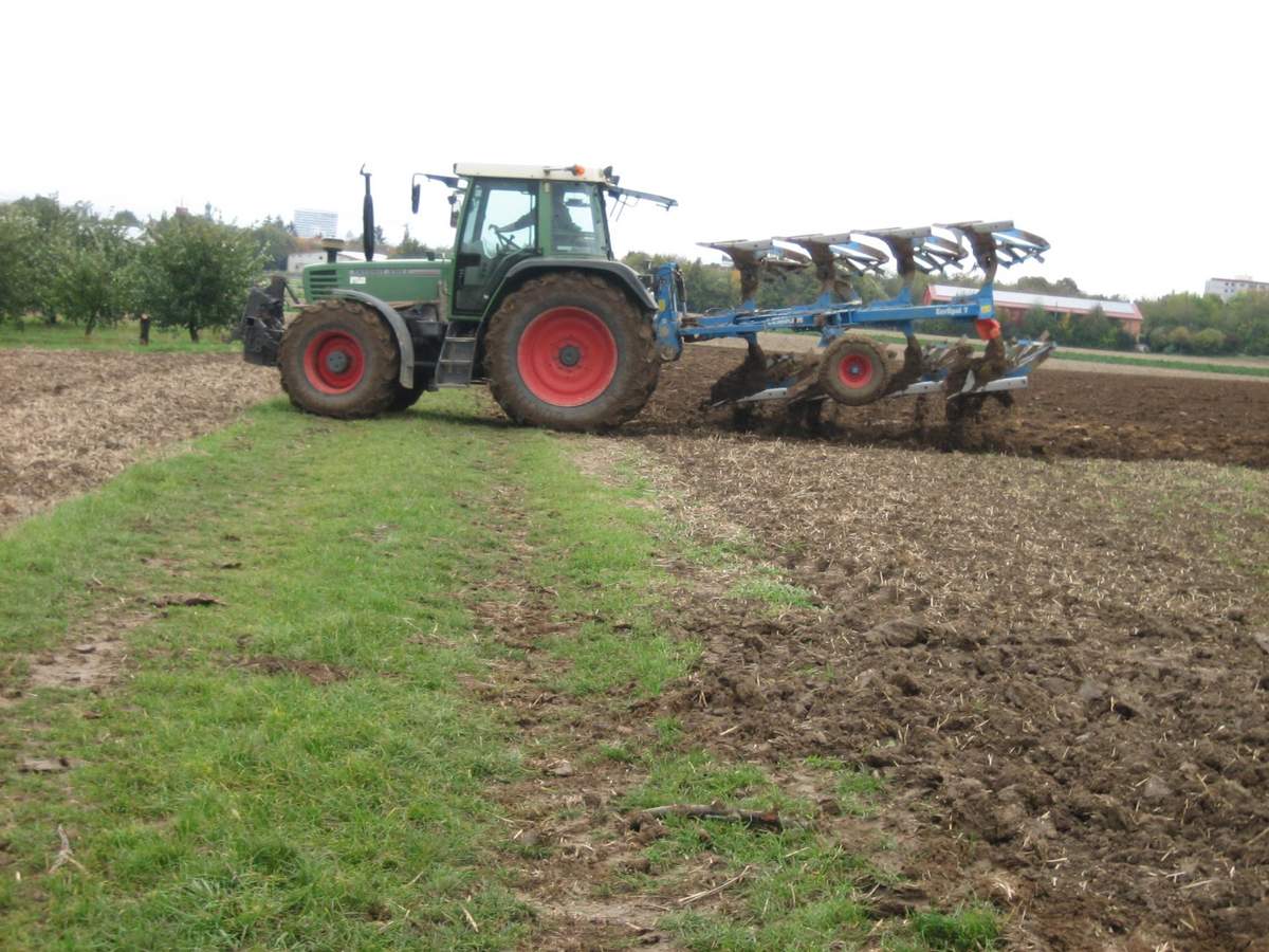 Drittels Bild von Unten, oben links, beim Pflügen.