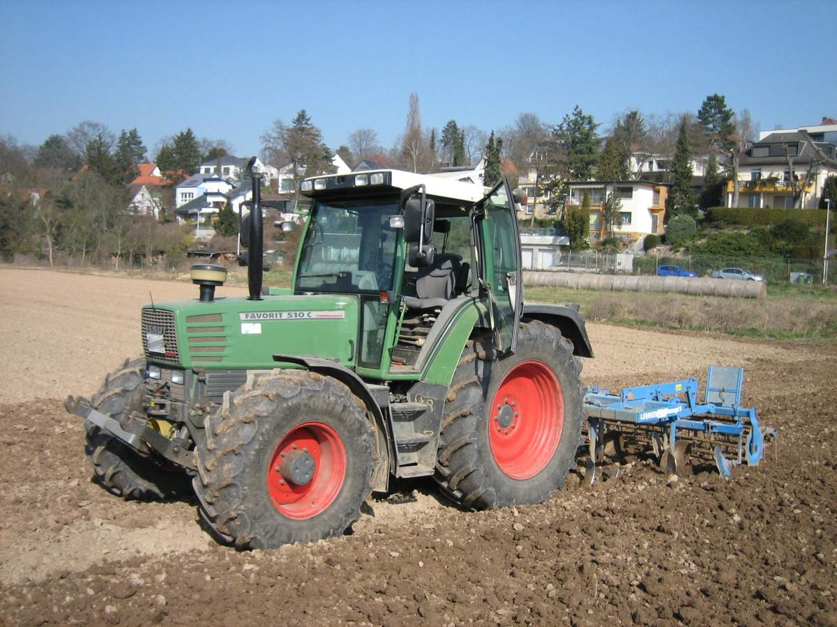 Auf diesen Acker eines Verwandten werden bald Erdbeeren gesetzt. Dass der Kompaktor am 510er hängt ist untypisch und nur dadurch bedingt, dass gleichzeitig der 312er Vario im Einsatz mit der Spritze war. Ansonsten ist der 312er aufgrund breiterer Bereifung wesentlich besser für die flache Saatbettbereitung geeignet.