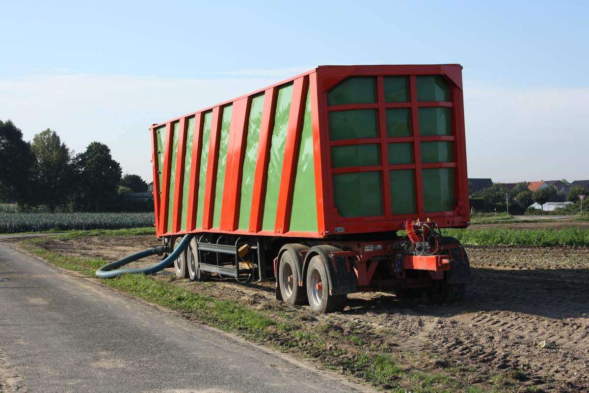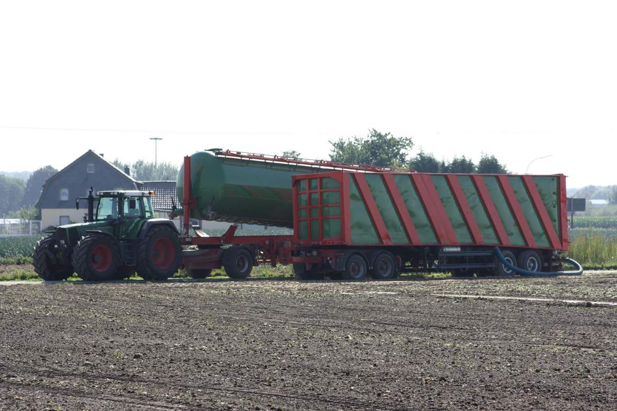 Zubringerfaß ist ein VA Kippsilo 57m³ mit einer Fendt 818 Zugmaschine