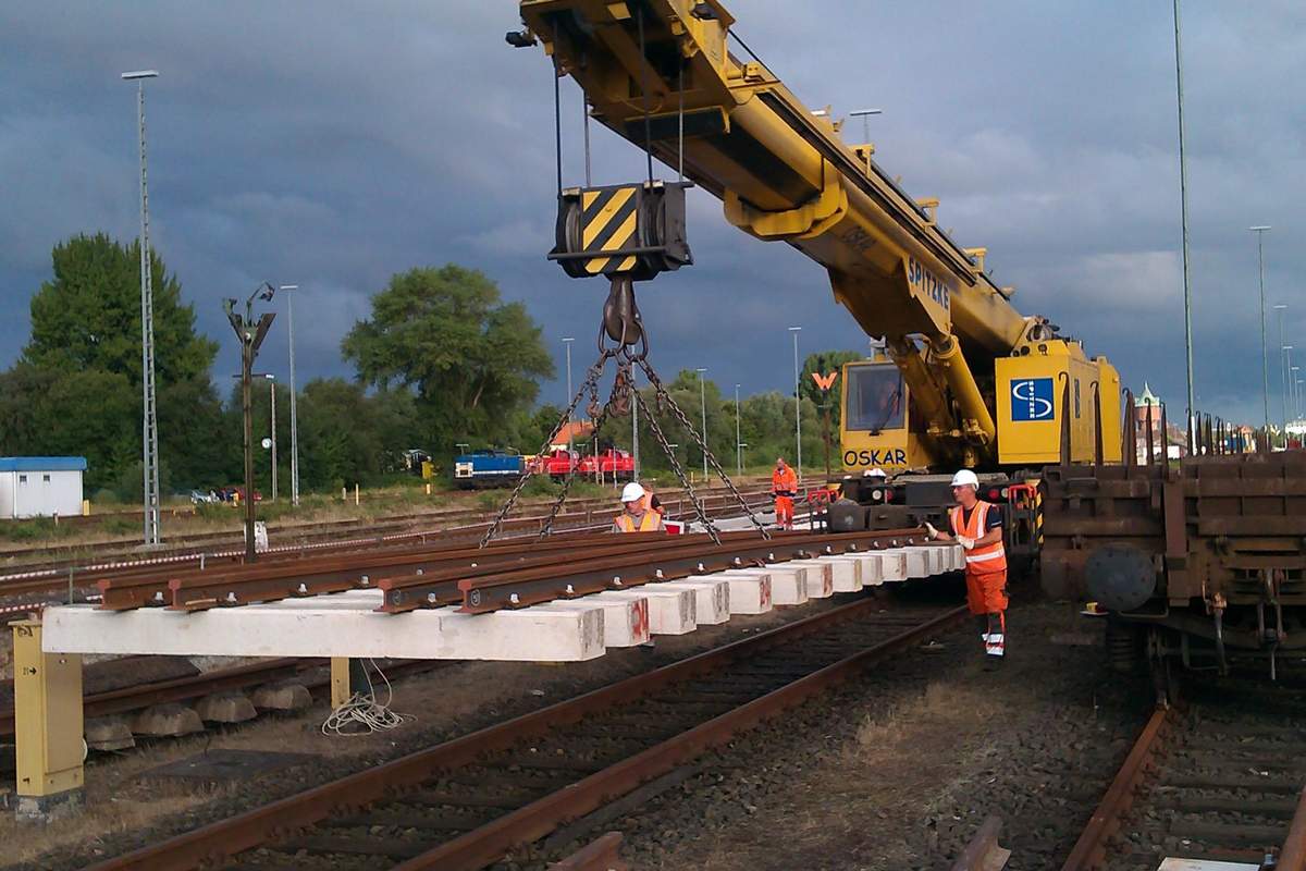 Hier werden mehrere Weichen erneuert und teilweise neue Gleise verlegt oder wieder