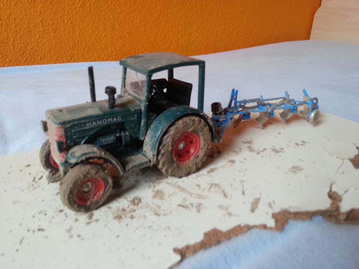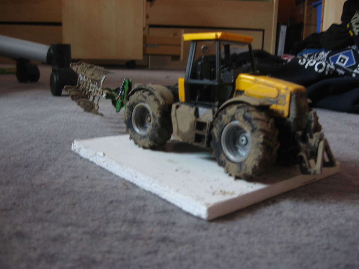 Zum Schmutz selber rate ich Dir die Räder gleichmäßiger zu verschmutzen (Traktor und Pflug).