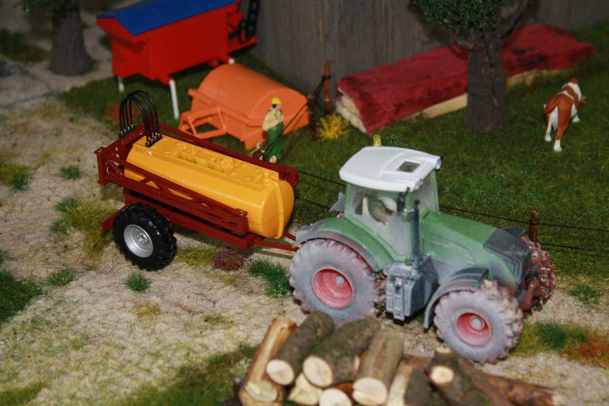 Jetzt will ich aber erst mal das Dio weiterentwickeln. Den Feldweg und die Obstplantage fertig gestalten, um dann entsprechende Bilder machen zu können...Das Teil ist aber auch schon 1,20 x 1, 80 m groß und sollte noch ein paar Anschlüsse mit 120 x 60 cm erhalten. Schließlich soll ja auch auf den Feldern gearbeitet werden können... Und irgendwo müssen die Teile auch bleiben, wenn sie nicht aufgebaut sind. Ich hab einfach zu viel!
