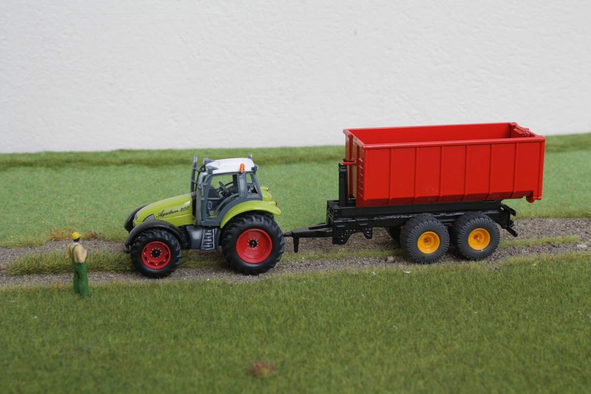Jetzt kommt ein Trekker mit Ballenzange und passendem Wagen. Aber den werde ich mir wahrscheinlich nicht zulegen. Hab mir so was ja selbst gemacht....