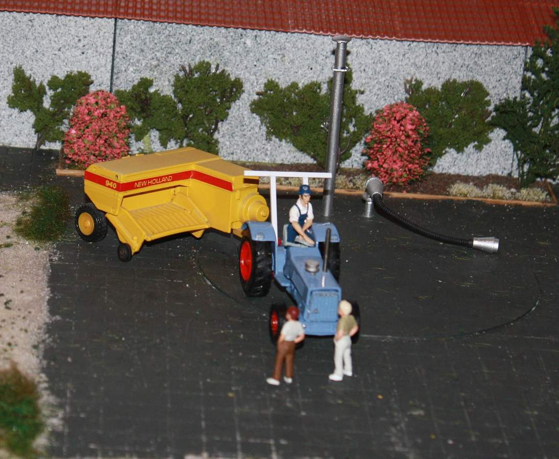 Es ist ein echter 3-Seitenkipper in 1:50, mit nach unten abklappbaren Bordwänden. Grade haben wir ihn sauber gemacht, nachdem das Fallobst damit zur Brennerei gebracht wurde. Franz und Xaver schauen sich grade mal da Gerät an. Ich bin immer wieder erstaunt. Der kleine lackschaden ist mit bloßem Augen gar nicht gleich erkennbar und auf dem Foto knallt er voll ins Bild!:o