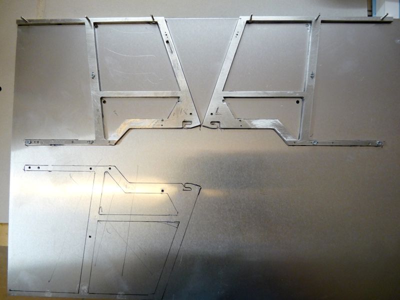 weiter ging es mit der Außenhaut. Den Kabinenrahmen zerlegte ich vollständig und übertrug die Umrisse der Seitenteile und des Fronteils auf 1mm-Alublech.