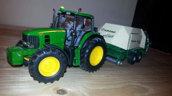 Hier noch der John Deere 7530 Nahaufnahme mit rundballenpresse von siku : -