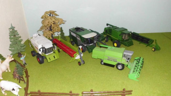 ! Auslöser dafür waren meine Großeltern die einen Hof besitzen und mir ständig Modelle von eigenen oder anderen firmen geschenkt haben .Seit längerem sind sie Rentner und unterstützen mich weiter in dem Hobby so wie unseren Hof Und nu paar kleine Bilder ! zuerst die Drescher . meine Häcksler Rüben und Kartoffel Technik Und eins meiner Lieblings Modelle und sehr bespielt der siku Traubenernter .So das war es Erst mal von meiner Seite mehr bilder werden folgen sobald neue gemacht werden :p Bitte gebt Feedback zu meiner Sammlung