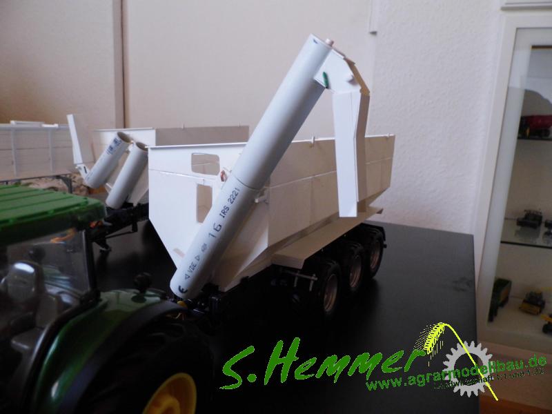 erste passprobe. das tridemfahrgestell ist nen ticken zu kurz aber das sollte kaum auffallen. ändern wollten wir das nicht da nico noch annaburger häckselwagen aufbauten hat die weiterhin passen sollen