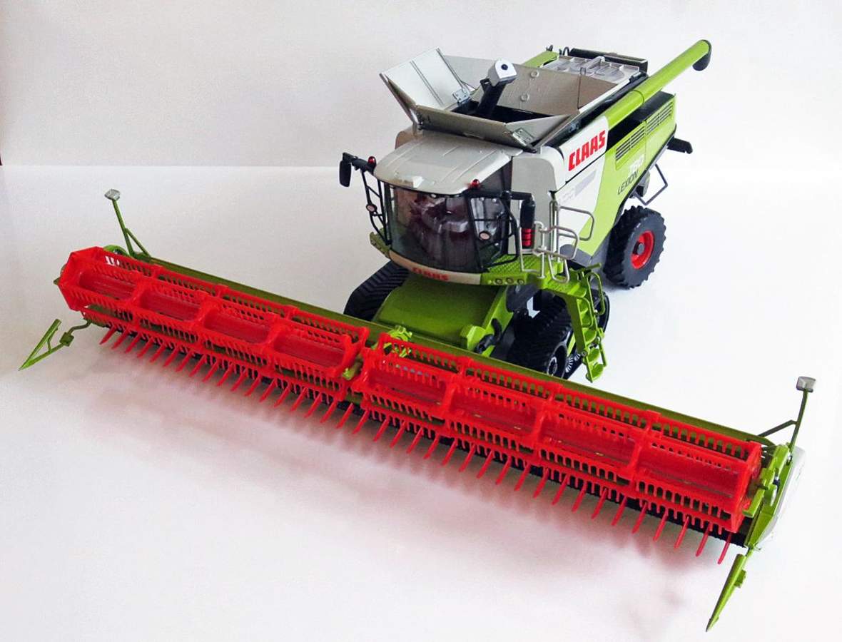 Der Lexion ist sehr schwer da fast alles aus Metall gebaut wurde. Aus Kunststoff sind die Anbauteile, Korntank und die Kabine. Sämtliche Seitenklappen sind aus Metall sowie auch der Grundkörper.
