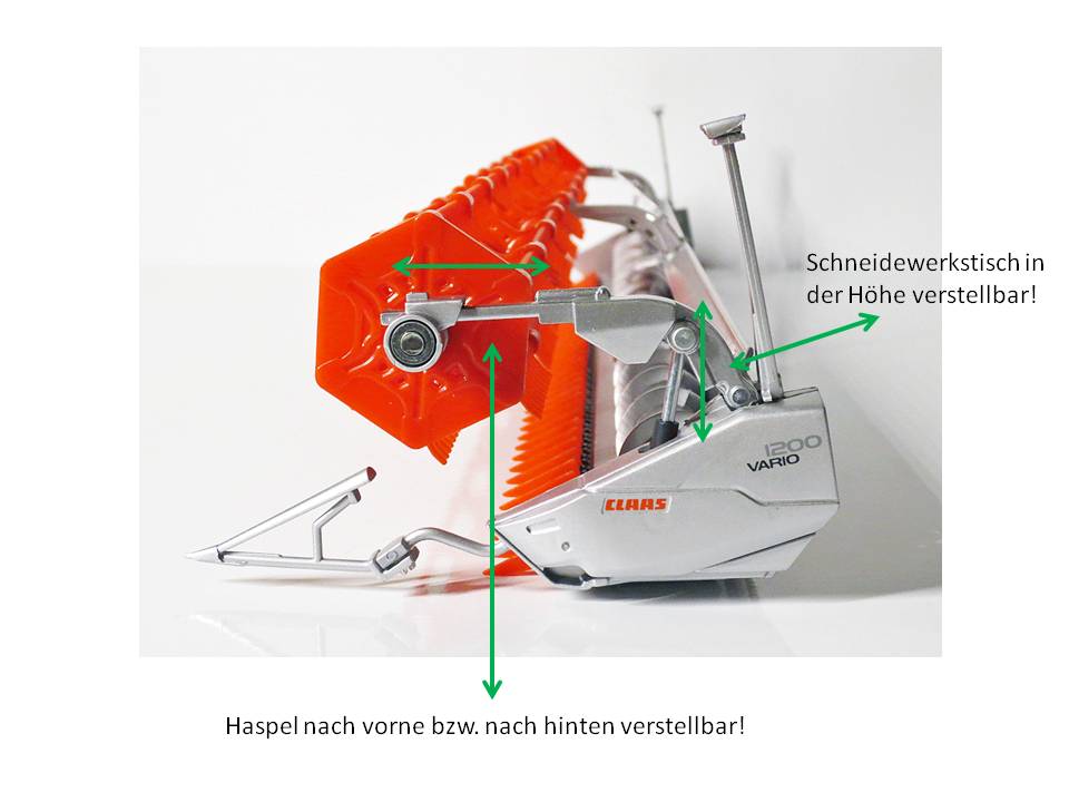 Funktionen ham Schneidewerk sind Schneidewerktisch horizontal verstellbar. die beiden Halmteiler sind auch einklappbar für den Transport auf der Straße. Die Laser Piloten sind leider nicht klappbar aber dafür sehr filigran ausgeführt.
