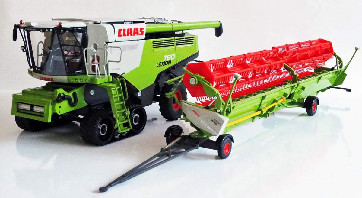Wiking Mähdrescher Claas Lexion 780 Terra Trac mit Vario 1200 Getreidevorsatz und Schneidwerktransportanhänger