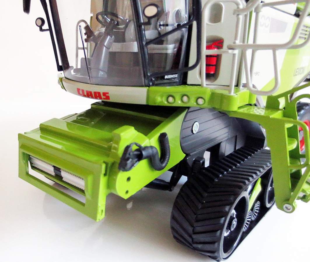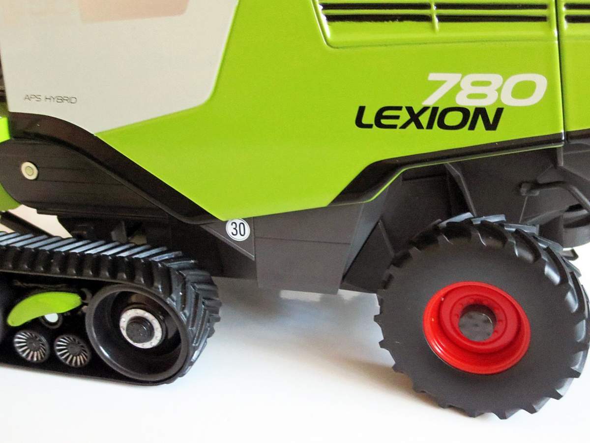Der Lexion ist sehr schwer da fast alles aus Metall gebaut wurde. Aus Kunststoff sind die Anbauteile, Korntank und die Kabine. Sämtliche Seitenklappen sind aus Metall sowie auch der Grundkörper.