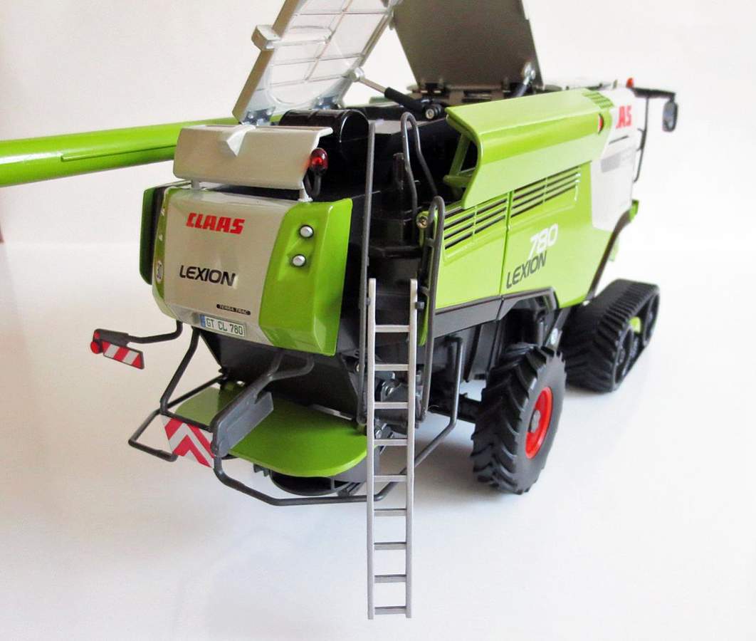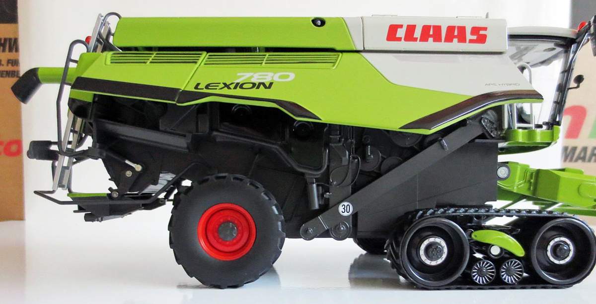 Der Lexion ist sehr schwer da fast alles aus Metall gebaut wurde. Aus Kunststoff sind die Anbauteile, Korntank und die Kabine. Sämtliche Seitenklappen sind aus Metall sowie auch der Grundkörper.