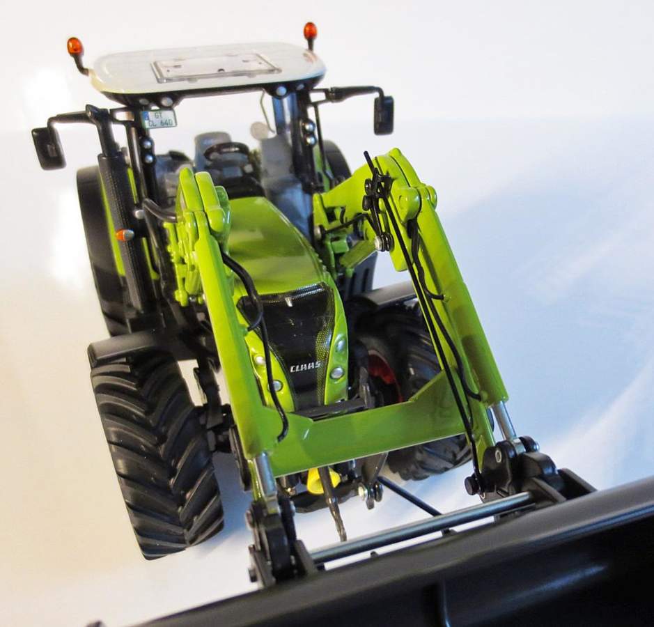Der Frontlader ist komplett aus Metall. Die Hydraulikzylinder sind mit Hydraulikschläuchen ausgestattet. Dem Modell steht der Frontlader sehr gut und macht den Arion 600 um einiges Attraktiver.