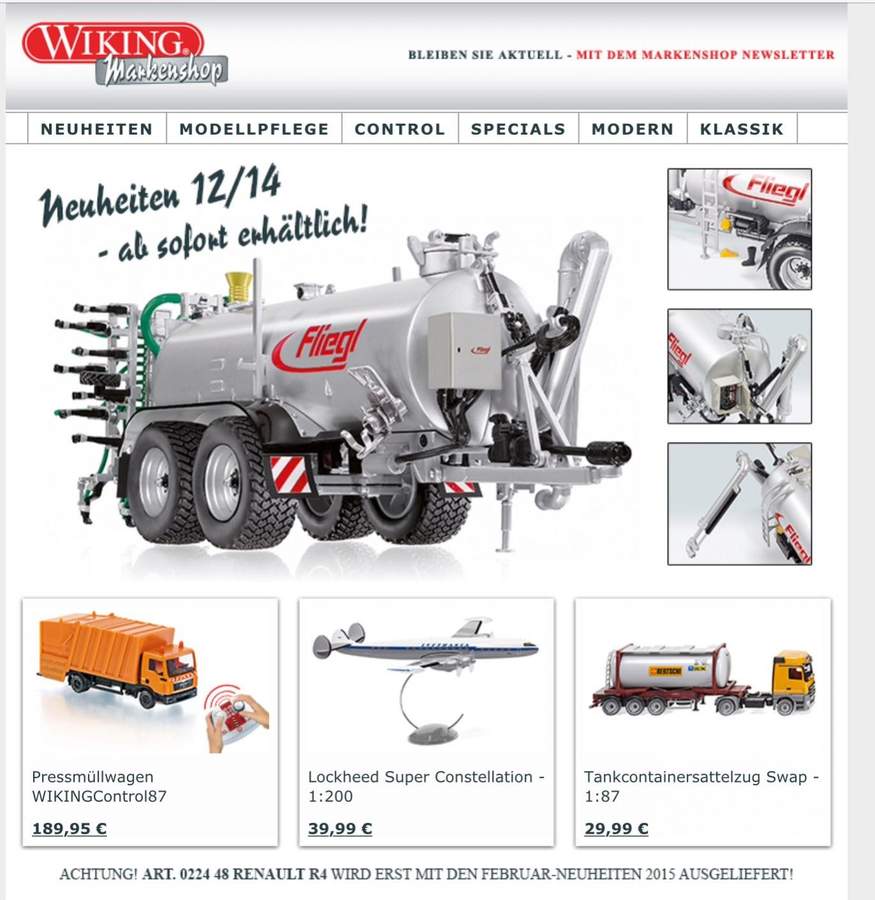 Wenn ich aber weis das seitens Wiking noch keine Auslieferung statt gefunden hat dann kann in den Shop doch stehen was will.