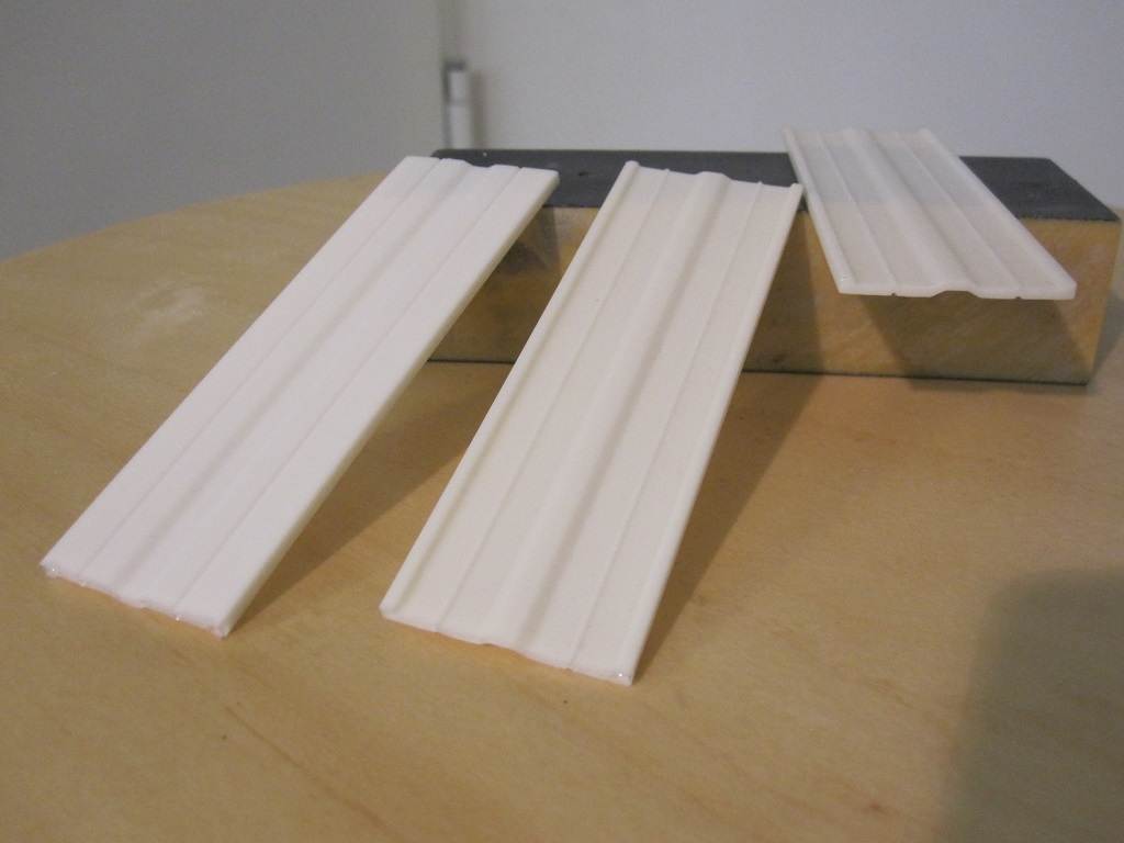 Genau so habe ich die Bordwände dann auch angefertigt. Ich habe mir dafür einen Rohling drucken lassen, die Oberfläche geschliffen und dann in Resin abgegossen. Dicke ist 1,5 mm.